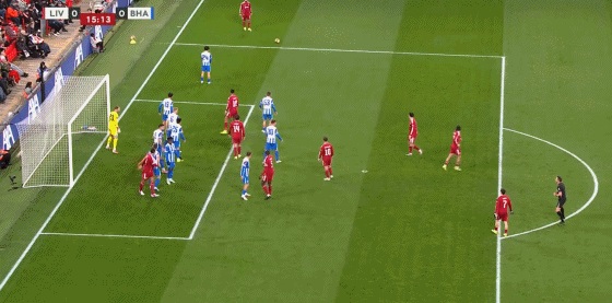 第16分钟,萨拉赫主罚小角度任意球直接攻门,皮球偏出立柱