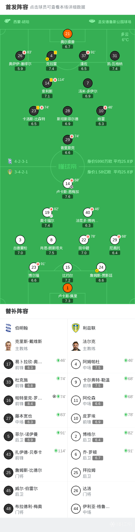 第49分钟,卢卡斯-恩梅加内切劲射破门,利兹联1-0伯明翰