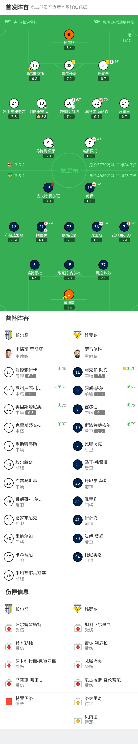 帕尔马2-1维罗纳,马特奥-佩莱格里诺、阿德里安-贝尔纳韦破门